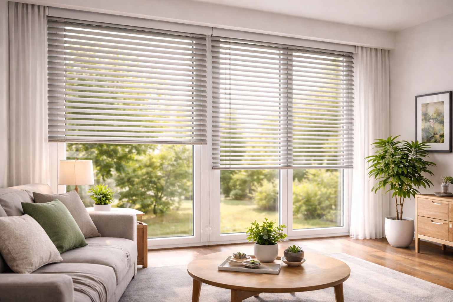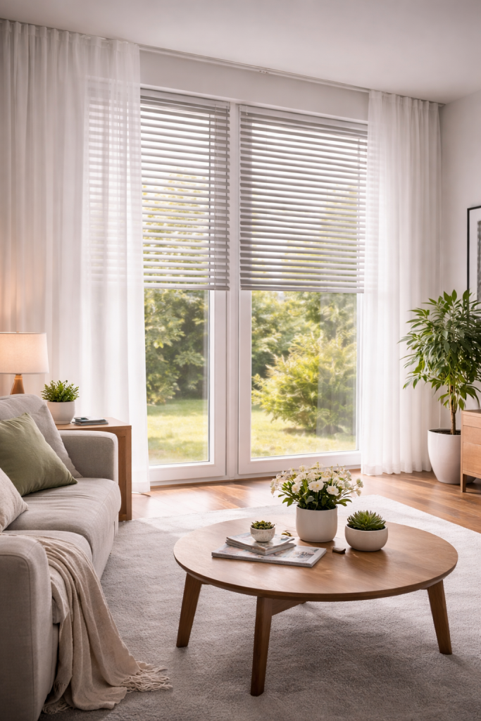 Klassische und moderne Jalousien ermöglichen eine präzise Regulierung von Licht und Privatsphäre.