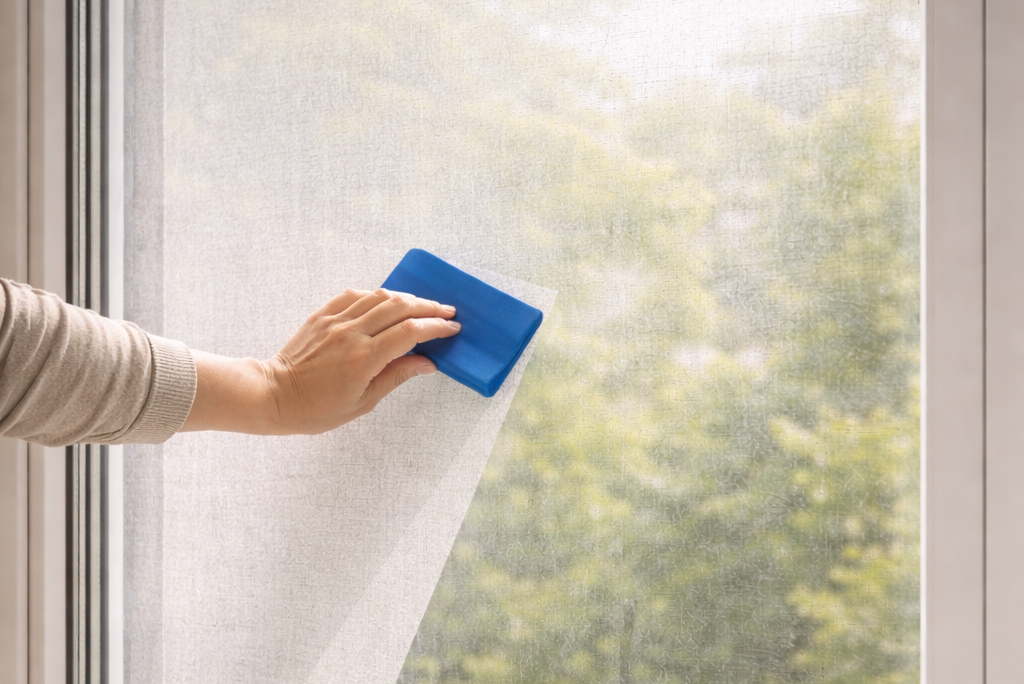 Das innovative Hafttextil schützt vor Einblicken, ohne den Raum zu verdunkeln – dezent, modern und stilvoll.