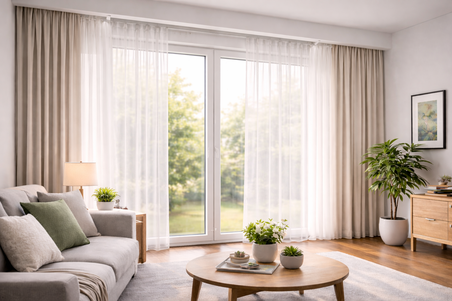 Individuelle Gardinenlösungen mit passenden Schienen und Stangen für funktionalen Sichtschutz und wohnliche Akzente.